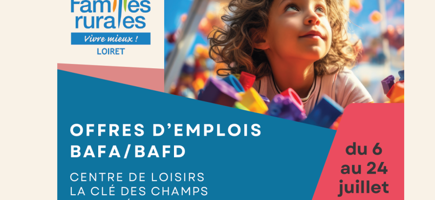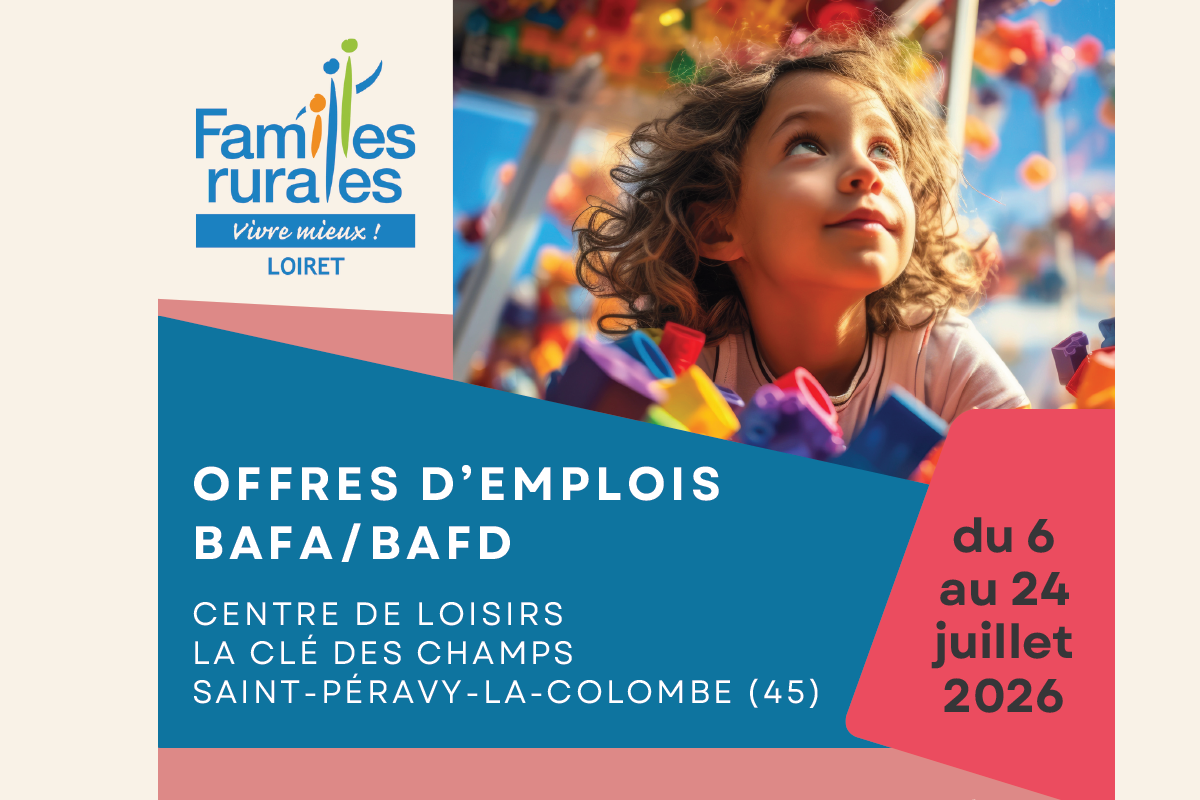 Familles Rurales Fédération du Loiret recherche ses futurs animateurs pour le centre de loisirs de Saint Péravy la Colombe du du 6 au 24 juillet 2026 !